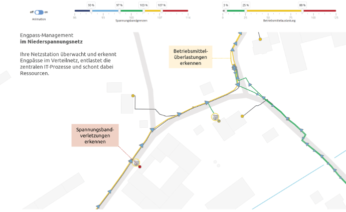 Ständig aktuelle Netzmodelle ermöglichen Ihnen die punktgenaue Auswertung von Netzlasten, Engpässen und Spannungsqualität – in Echtzeit.